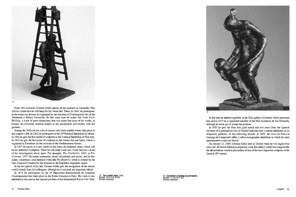 The sculptors included in this volume are extremely important in the evolution of the three last decades of the 20th century. They are the protagonists of the transformation that took place inside the traditional direct carving in favour of a wider conception. Some materials like bronze, clay, iron, steel, concrete and industrial materials become important.