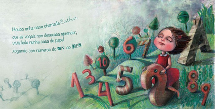 En «O soño de Esther» latexa a idea de que «o coñecemento é o contrario do medo». A súa protagonista, Esther, atopa nas vogais o fogar, o entretemento, a beleza, o camiño e a seguridade no descanso. Grazas a elas consegue escapar dunha temible treboada, que é unha metáfora da ignorancia que todo o quere destruír ao seu paso. Neste libro, as nenas e os nenos, achéganse ás vogais, aos números, aos puntos cardinais a través dunha fermosa e entretida historia.